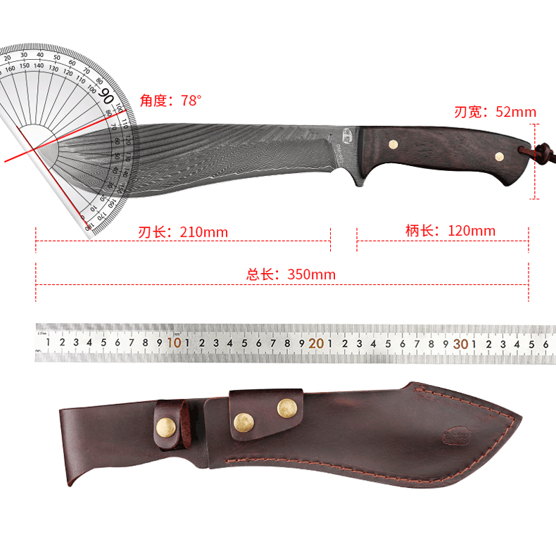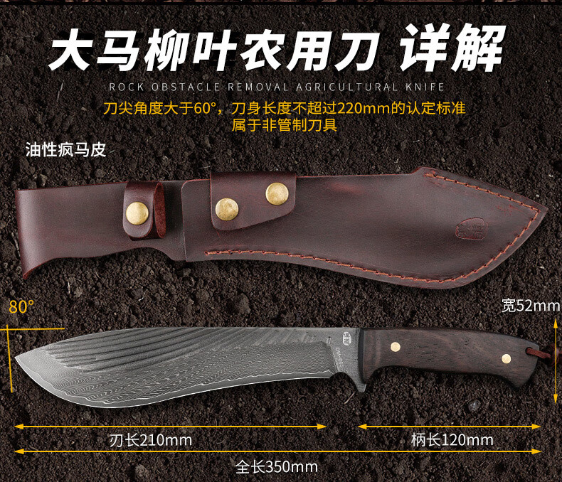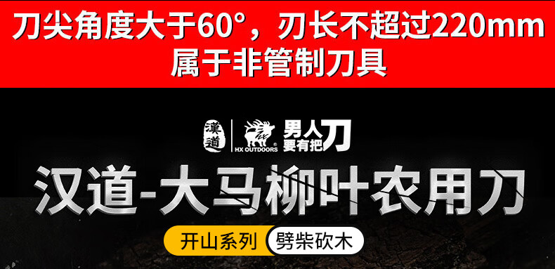汉道户外砍柴刀一体龙骨开路开山排障刀丛林野外生存刀大马柳叶刀具 原色
