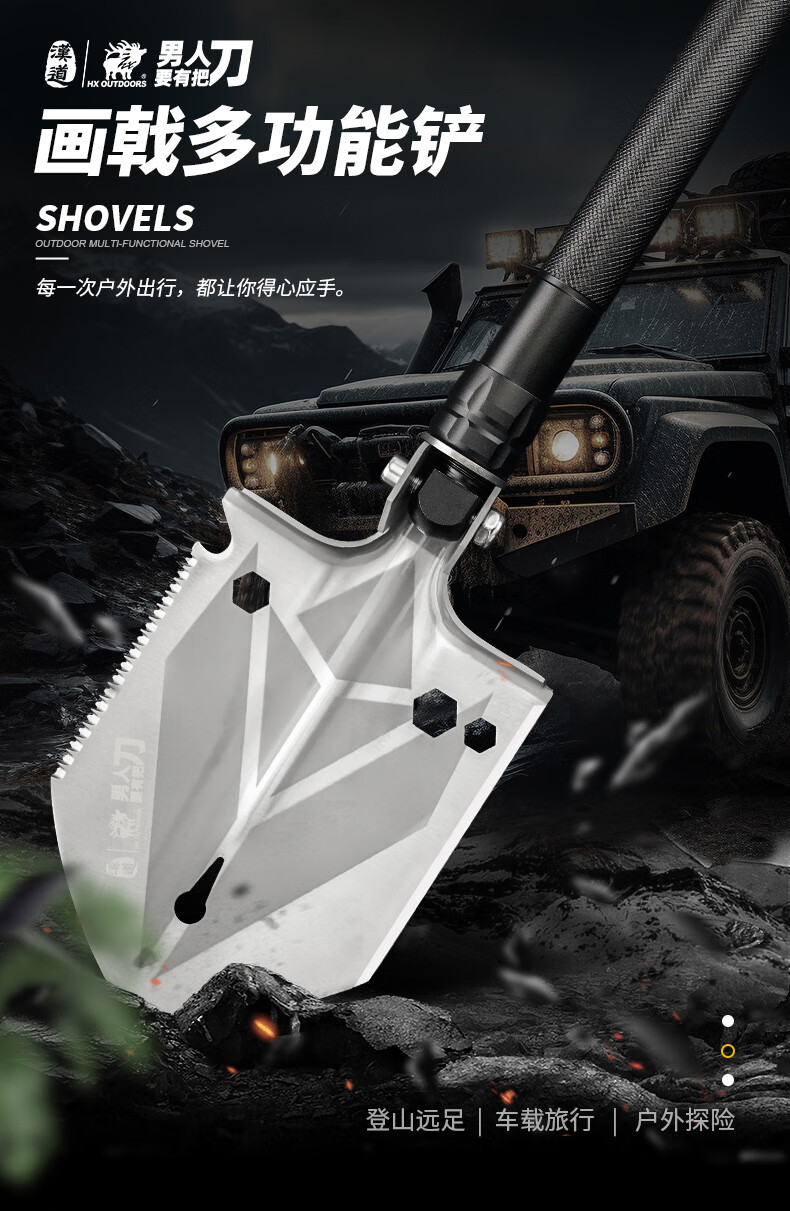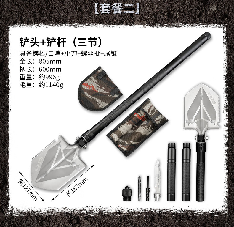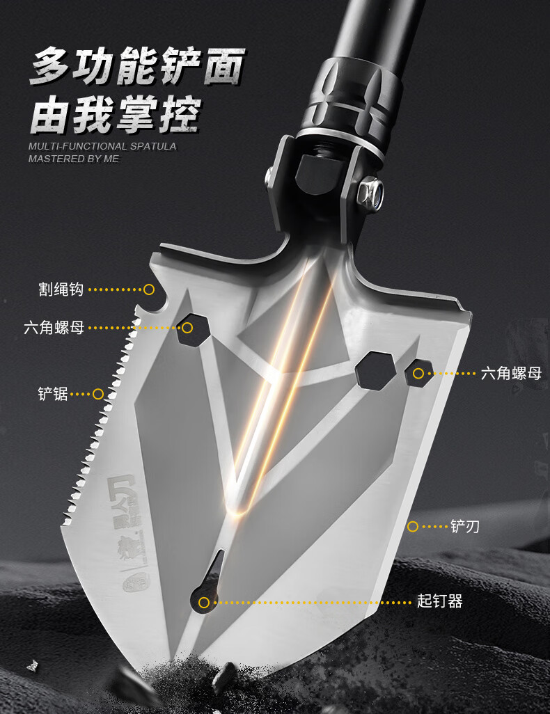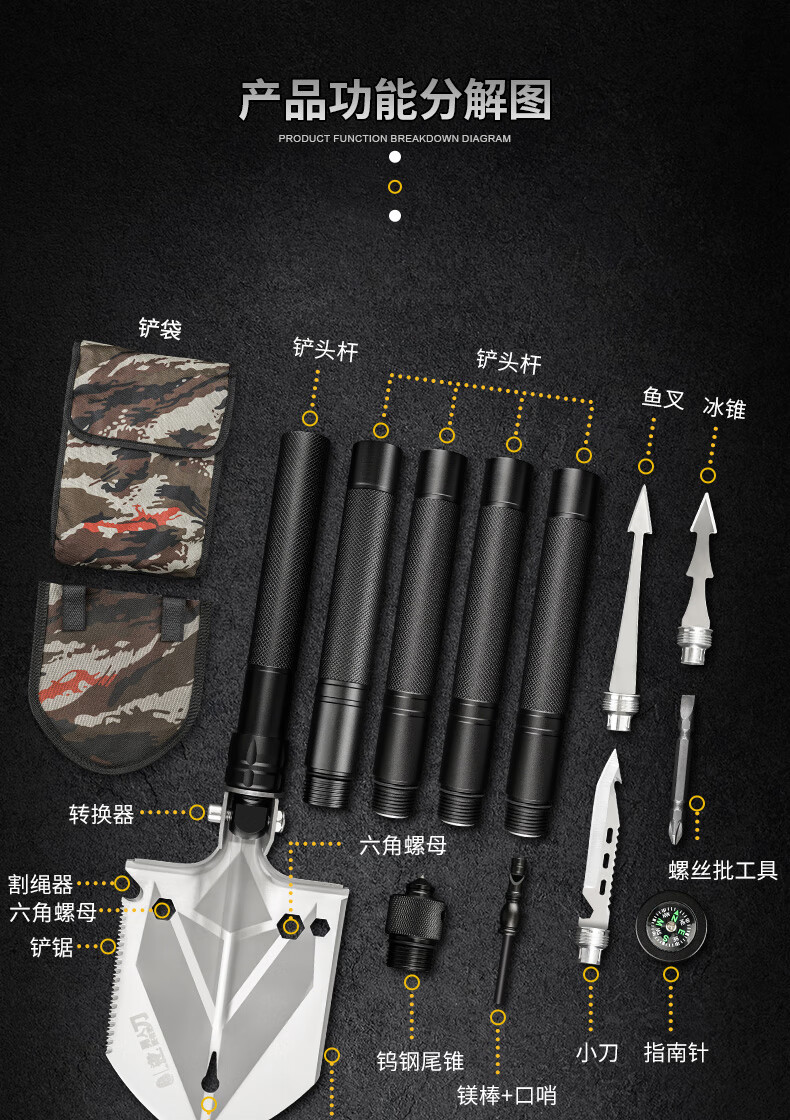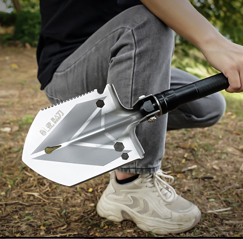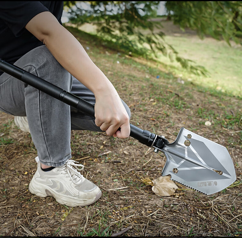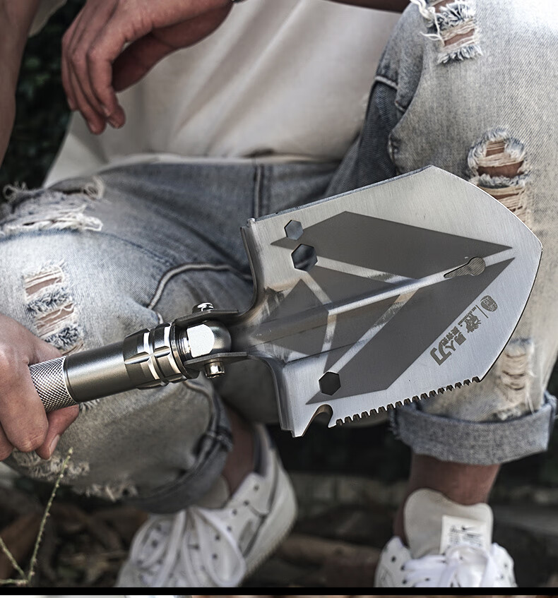 汉道户外工兵铲多功能车载便携迷你铲子野营钓鱼折叠铁锹 银色两节铲