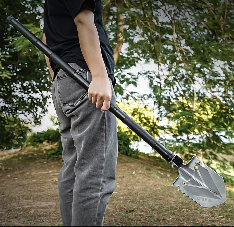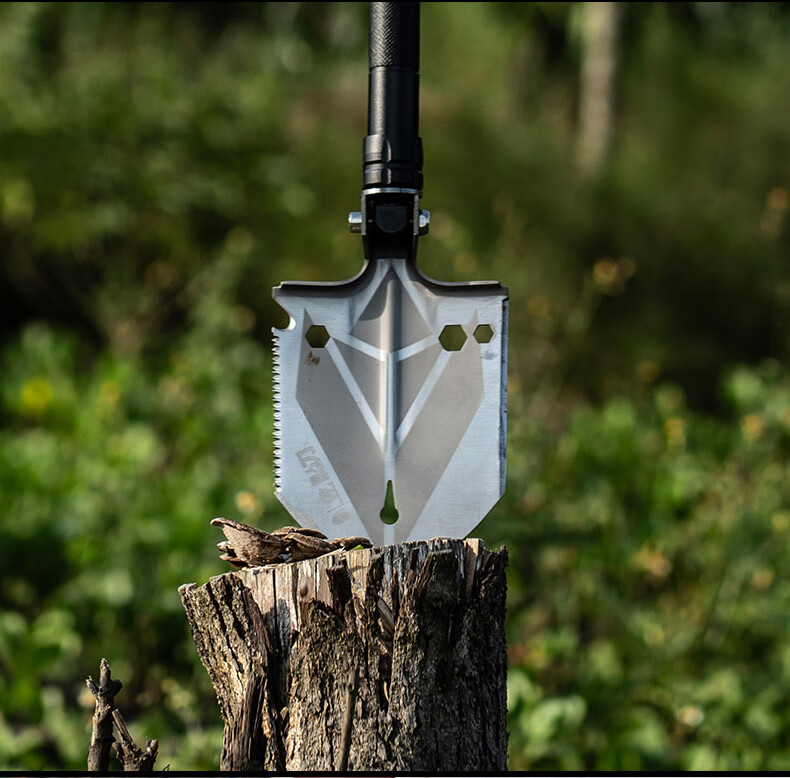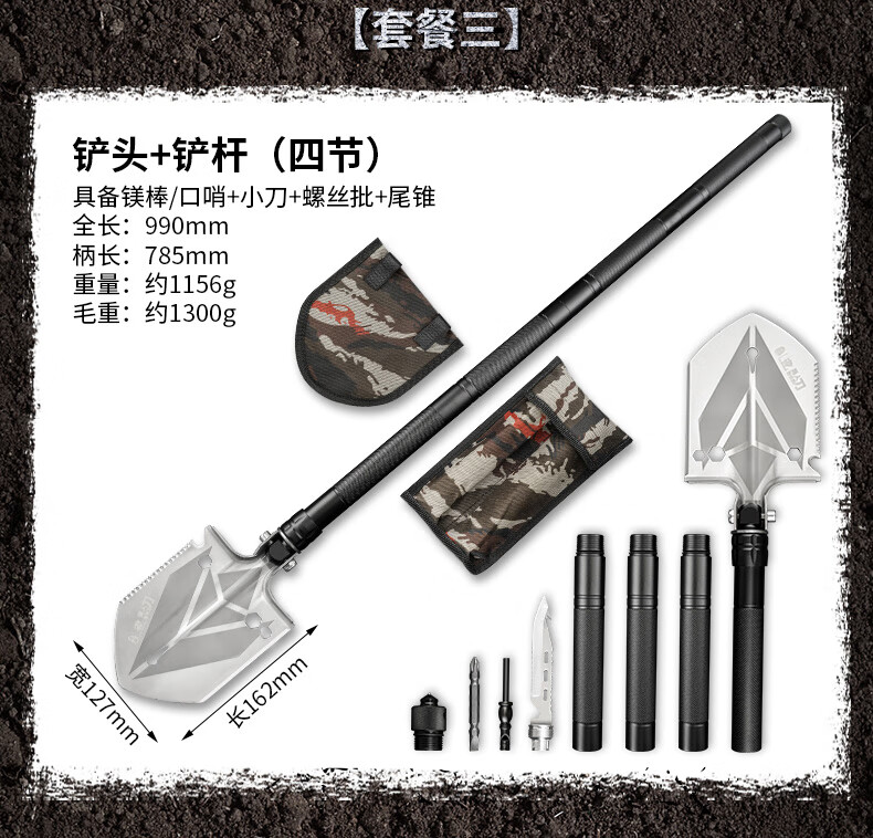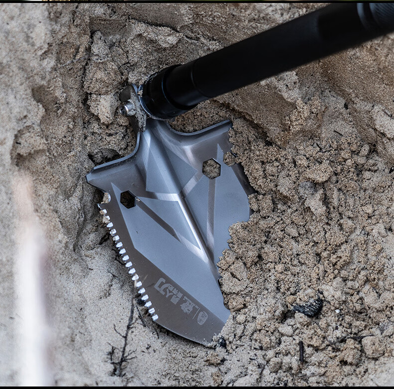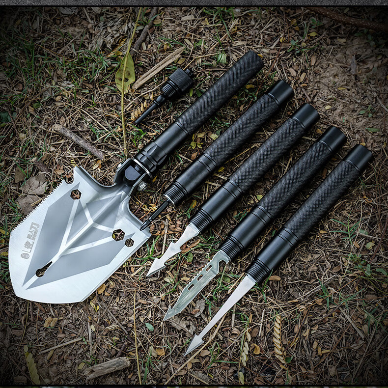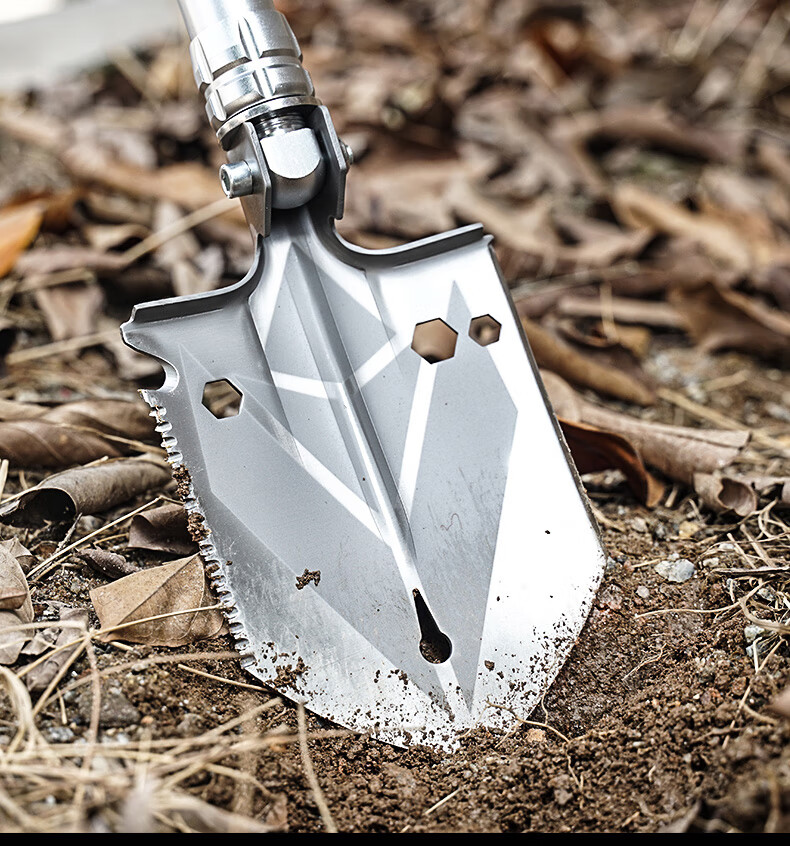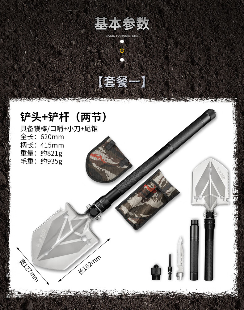 汉道户外工兵铲多功能车载便携迷你铲子野营钓鱼折叠铁锹 银色两节铲