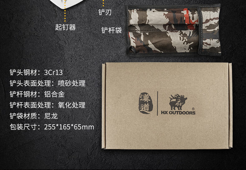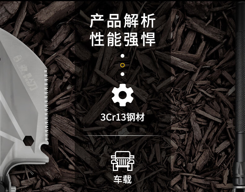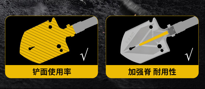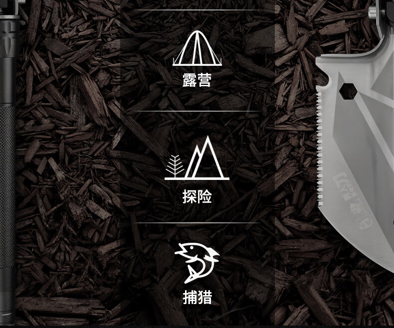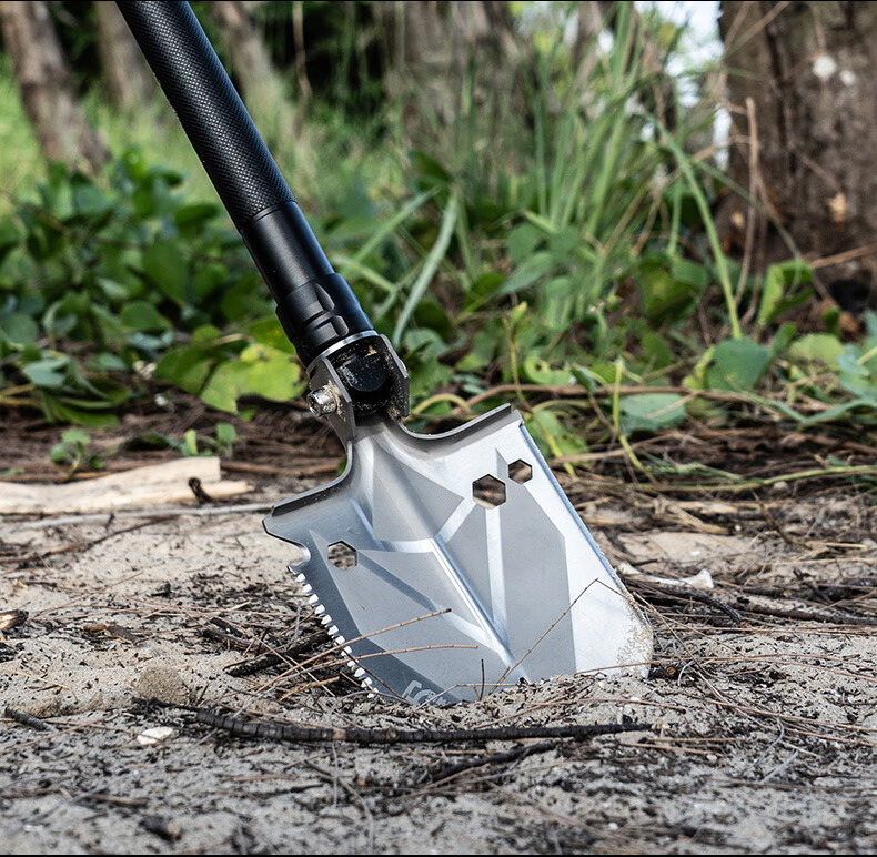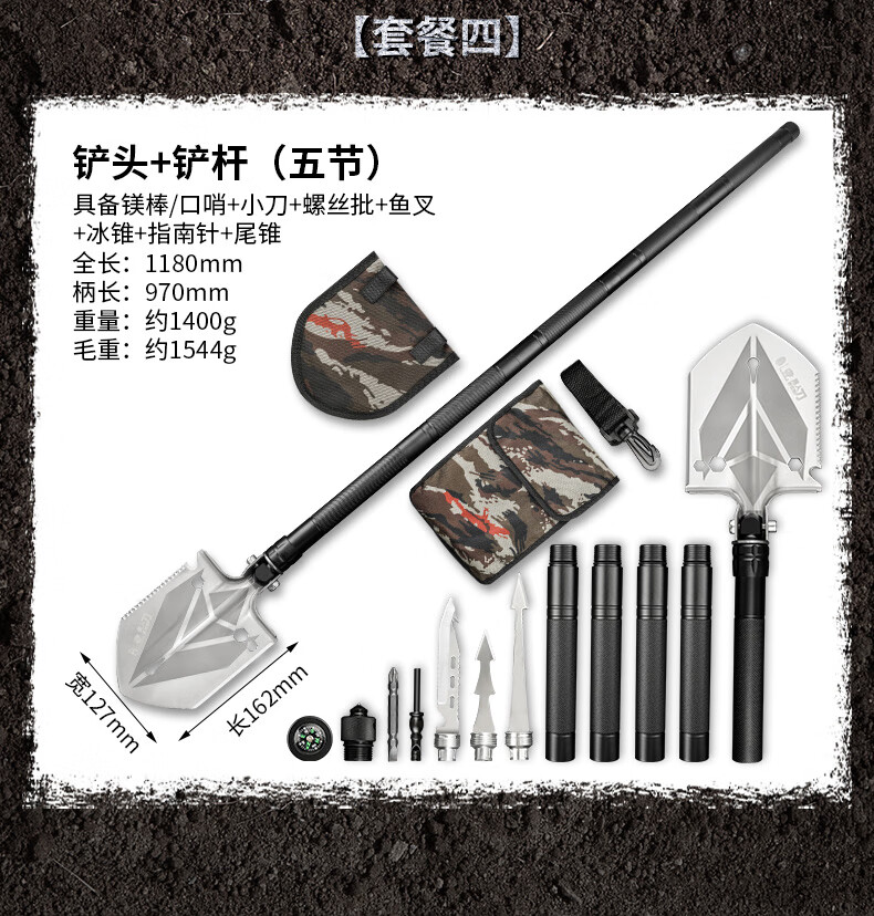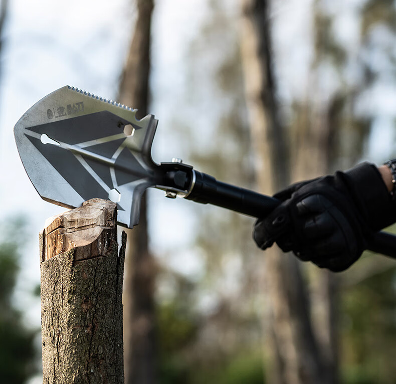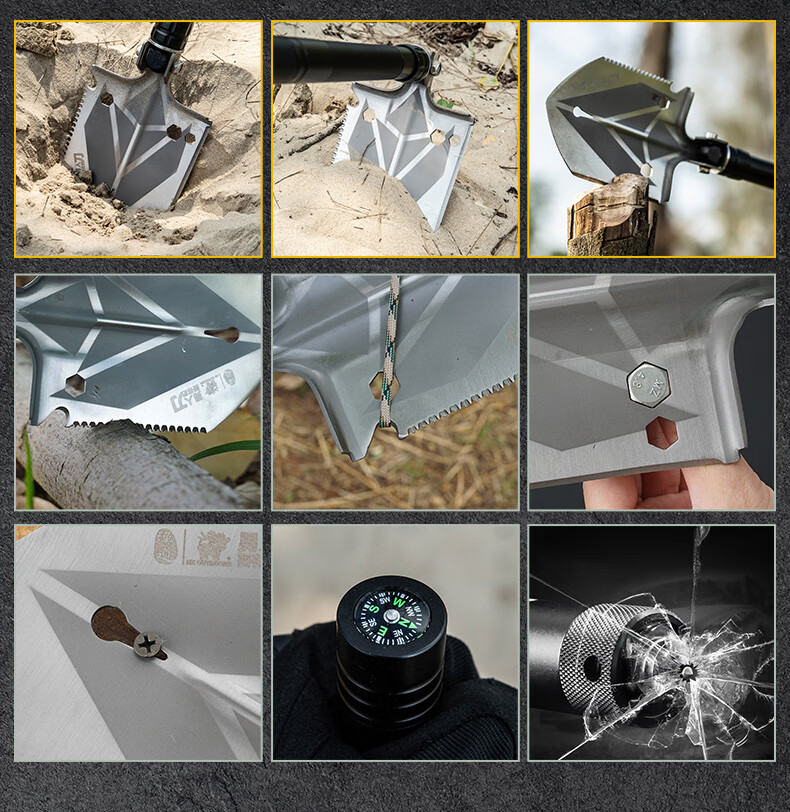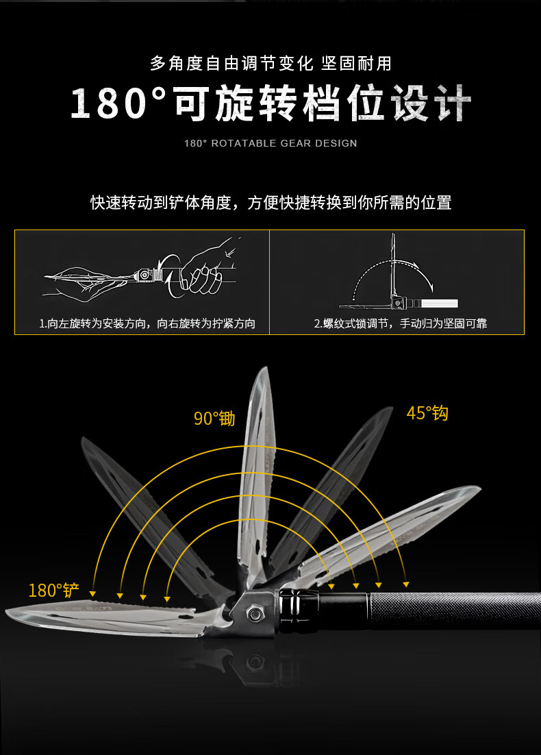 汉道户外工兵铲多功能车载便携迷你铲子野营钓鱼折叠铁锹 银色两节铲