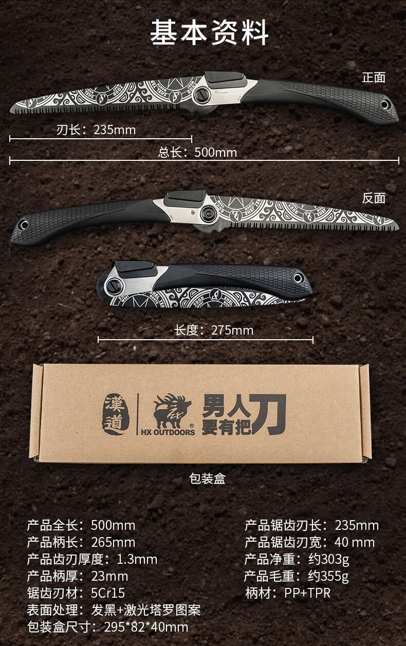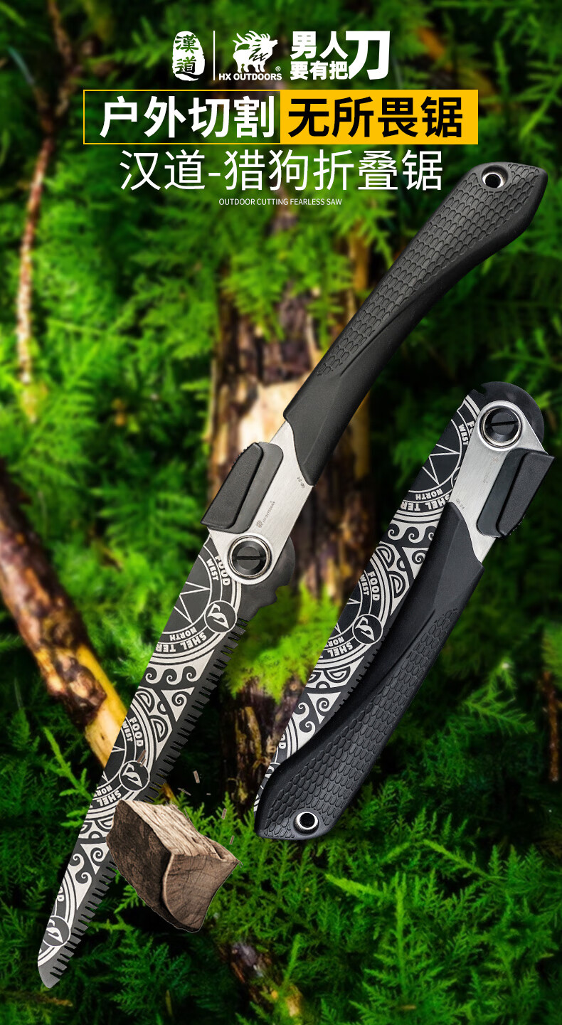 汉道户外工具猎狗折叠据树锯子手锯木工伐木 黑色